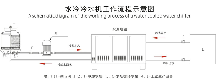 3、水冷系列需要配置冷卻水塔及冷卻水泵,冷水機放置在室內,噪音比較低,制冷效果更